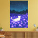 White Cat in Midnight Blossoms Canvas Print