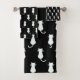 White Cat Isolated on Black Polka Dot Pattern Bath Towel Set