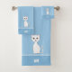 White Cat & Monogram on Light Blue Bath Towel Set