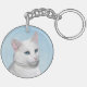 White Cat Painting - Cute Original Cat Art Keychain