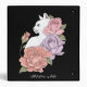 A profile of a white cat with pink, peach and lavender coloured roses in a backdrop of black