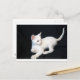 A playful white cat with black background provides a great gender neutral fun image to put on your favourite product.