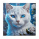 Pretty white cat surrounded by flowers with pretty blue eyes ai art.