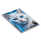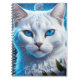 Pretty white cat surrounded by white roses with pretty blue eyes ai art personalized notebook.
