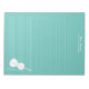 This pretty aqua notepad has an intricate cello design that looks like layered paper cutouts with a horizontal white bow elegantly underlining your name.