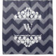 Trendy white chalk look chevrons background with custom accent colour. Foreground features white chunky scrolls and swirls top and bottom frames with personalized monogram letter.