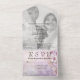 Introducing our classic and romantic White Cherry Blossom (Sakura) floral all-in-one invitation which allows you to feature a treasured picture of your choice as the background for the majority of the inside of the invitation. This invitation is a floral cherry blossom theme with a purple, mauve background and dark grey, almost black text. This all-in-one invitatation is perfect for couples seeking a timeless romantic, vintage and classic aesthetic for their special day. The highlight of this invitation is the convenient QR code, allowing guests to RSVP effortlessly using their smartphones. For traditionalists, we've included a traditional paper RSVP option as well. With the all-in-one design, guests can easily tear away the RSVP section and send it back. Additionally, we've provided email information for RSVPs, ensuring a seamless and convenient RSVP process. There is a transparent, overlay positioned over the photograph so that it will match the aesthetic of the invitation. This template was created using a photo with a landscape orientation, and the customer, in all likelihood, will have an easier time with successful picture placement using a photo with a landscape orientation.