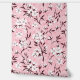 White cherry blossom branches painted with watercolors and ink on a pink background