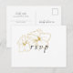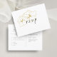 Modern minimal chic. This lovely RSVP response postcard features a set of contemporary fonts in jet black against a crisp white background and delicate floral detail in faux gold.