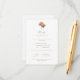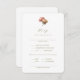 This white wedding RSVP card features a floral blush rose bouquet, contemporary set of fonts in olive green as well as optional wedding website address at the back.
