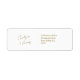Chic and elegant wedding address label sticker, featuring couple names in a contemporary set of neutral faux gold - ochre fonts against a crisp white background. This item forms part of a wedding suite containing invitations and stationary in a variety of neutral mix and match items. .