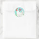 A thank you sticker decorated with a white chicken in a patch of dandelions drawn with pencil with a robins egg blue watercolor background.