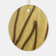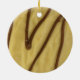 A delicious cookie ornament dipped in white chocolate and decorated with chocolate fudge drizzle.