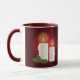 Destei's original illustration of two candles together with a Common Holly / Christmas Holly plant. The background colour is red. There is also a personalizable text area for a name or other custom text.
