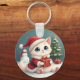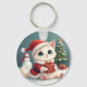 White Christmas Cat Button Keychain