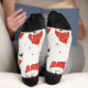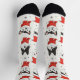 A white pattern-based sock design with cat illustrations having Christmas outfit and Santa Hats. Great for cozy Christmas moments.