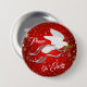Brighten Up Your Outfit with this Inspirational "One of Kind" White Christmas Dove Button! It Features a Serene White Christmas Dove Flying Carrying an Olive Branch on a Red Christmas Background Among Christmas Stars & Snowflakes, with Flowing Grey & Silver Ribbons Spreading..."Peace On Earth"!
