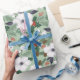 Christmas white flowers and red berries with evergreens in a seamless pattern.