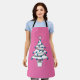 An illustration of an elegant chic white Christmas tree with plenty of blue hanging balls in pink background. This design is for people who loves Christmas, giving gifts and giveaways.