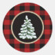 White Christmas Tree Holiday Red Buffalo Plaid Classic Round Sticker