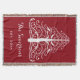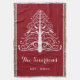 Personalize the snuggly White Christmas Tree on Red Throw Blanket and create a keepsake gift idea for a newlywed couple. Customize it with a family name and year they were married or text of your choice. This soft and cozy custom xmas throw blanket features an intricate white Christmas tree with a red background.