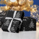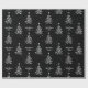 White Christmas Tree Pattern Custom Text Black Wrapping Paper