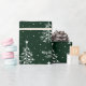 This Christmas wrapping paper features a white pine tree and white snow pattern with custom text on a green background (Changeable background colour). For more advanced customization of this design, please click the "customize further" link.