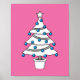 An illustration of an elegant chic white Christmas tree with plenty of blue hanging balls in pink background. This design is for people who loves Christmas, giving gifts and giveaways.