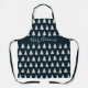 This modern and elegant apron features white Christmas Tree silhouettes and little white snowflakes. The customizable caption at the waistband reads Merry Christmas