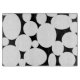 CLUSTER OF WHITE CIRCLES AND OVALS IN DIFFERENT SIZES WITH BLACK BACKGROUND