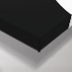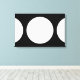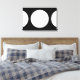 This bold geometric pattern features a white dot in the centre and two white half circles on the edges of a black background.