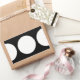This bold geometric pattern features a white dot in the centre and two white half circles on the edges of a black background.