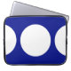 This bold geometric pattern features a white circle in the centre and two white half circles on the edges of a vibrant blue background.
