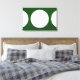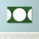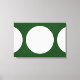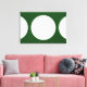 This bold geometric pattern features a white circle in the centre and two white half circles on the edges of a green background.