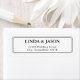 Complete your wedding stationery with the "White Classic Script Wedding Return Address Label." Featuring elegant black script on a crisp white background, this label adds a refined touch to your invitations, thank-you cards, and more. It's the perfect blend of style and functionality, ensuring your correspondence looks as sophisticated as the event you're planning. Thoughtfully designed for couples seeking timeless elegance, this label offers a seamless finishing detail to your wedding suite.