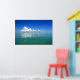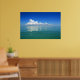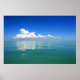 Poster of a relaxing scenic painting of a fluffy white cloud in a clear blue sky reflected in a calm turquoise ocean.