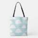 White Clouds Pattern Personalized Aqua Tote Bag