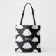 White Clouds Pattern Personalized Black Tote Bag