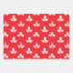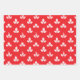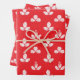 A vermillion red and white wrapping paper sheet trio featuring a white stamped clover motif on a vermillion red background.
