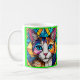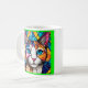 Coffee cup with a charming glass-style cat design (Misc Stained Glass), full of vibrant colors and geometric shapes that capture light with an artistic and modern effect.