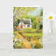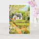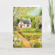 Whimsical white cottage in summer illustration style image on a greeting card. Text can be changed to your preferred greeting. AI assisted graphic purchased with commercial use. Artwork: RedHeronLighthouse