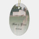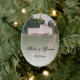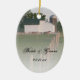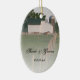 Commemorate your rural ranch theme nuptials with the charming White Country Barn Wedding Oval Ornament. This custom Christmas ornament features a quaint scenic farm photograph of a white barn and silo with two brown horses and a wooden barbed wired fence.