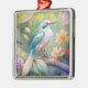 White Crested Iridescent Teal Wing Fantasy Bird Metal Ornament