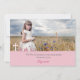 First Holy Communion photo thank you card with pink, textured look bottom, white cross and the words "Thank You" in pink. Add your own image and customize the details for a special Communion thank you card.