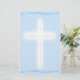 Inspirational stationary features a bright-white cross on blue background.