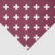 White cross stitches on mulberry
