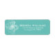 Elegant white cute octopus illustration on turquoise-blue background. Customizable label template.