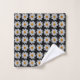 Bath towel set that features a photo image of a white Dahlia flower with yellow centre on a black background and printed in a repeating pattern. A lovely, floral design! Order towels separately or as a set.