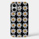 Protective and trendy phone case for the Apple iPhone and features the photo image of a simple, white Dahlia flower with yellow center on a black background and printed in a repeating pattern. A fun, floral design! Select case for your iPhone model. NOTE: When changing case styles, you may need to adjust image pattern position on case.