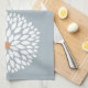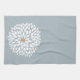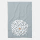 This is a lovely towel that has a white dahlia flower on a grey background. You can add text to personalize it if you choose.